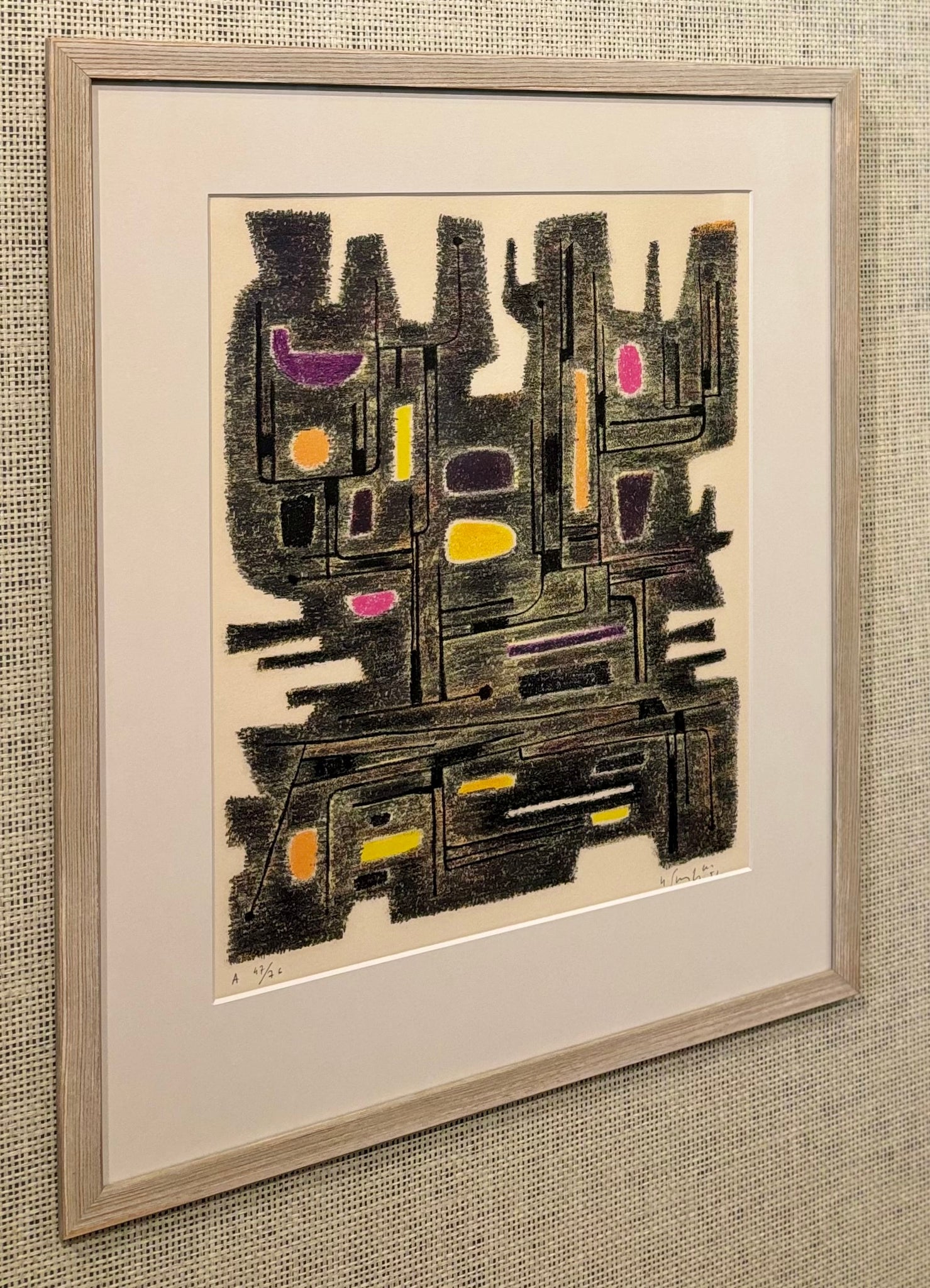 Gustave Singier was born 11 February,1909, Warneton. He was a Belgian non-figurative painter and print maker active in France as part of the new Paris School of Lyrical Abstraction and the Salon de Mai.